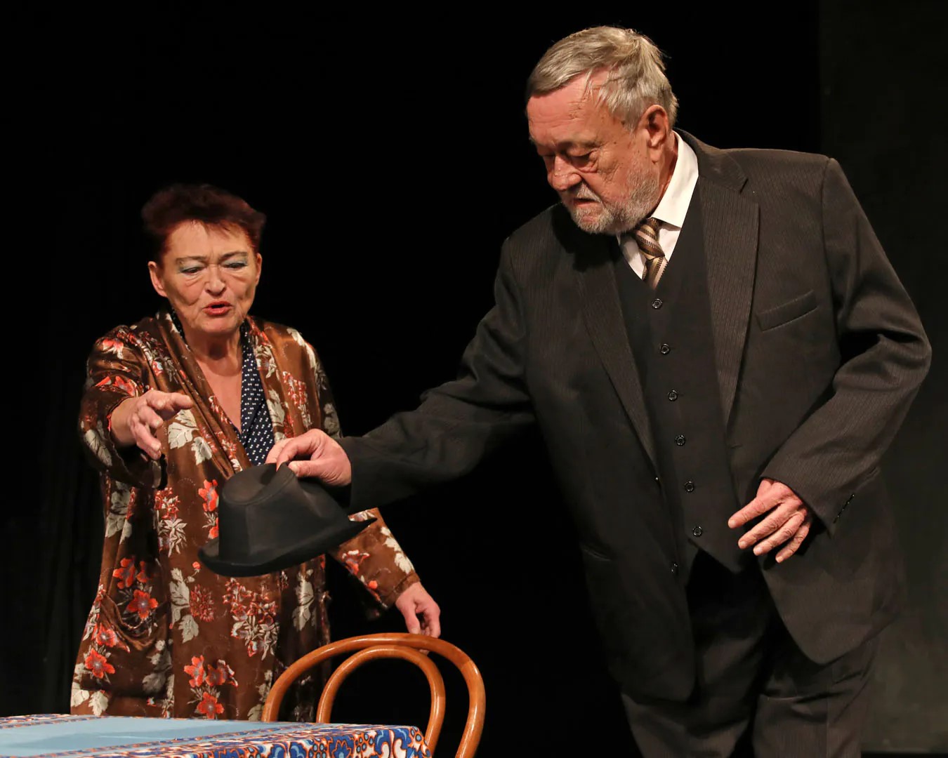 Jaroslav Slánský v této inscenaci znovu oživuje příběh dvou manželských párů, které se rozhodnou