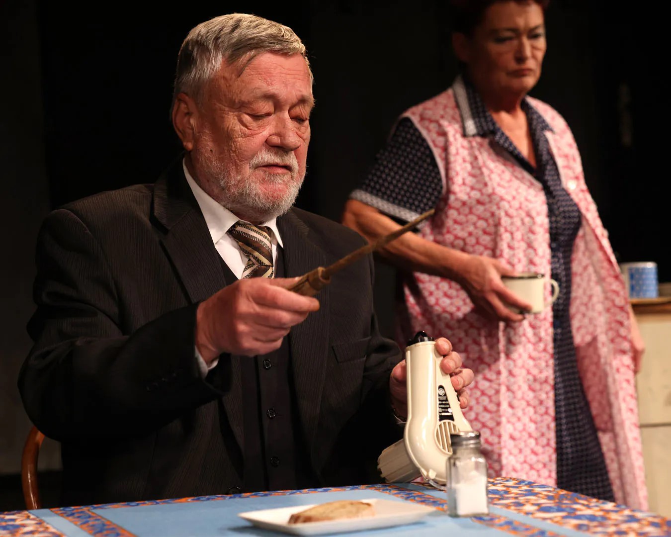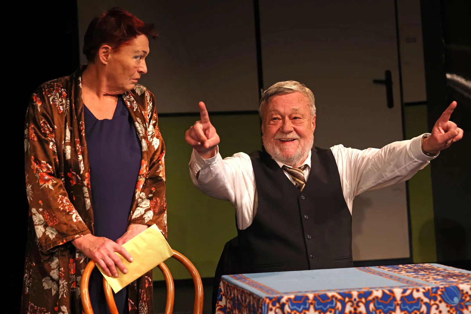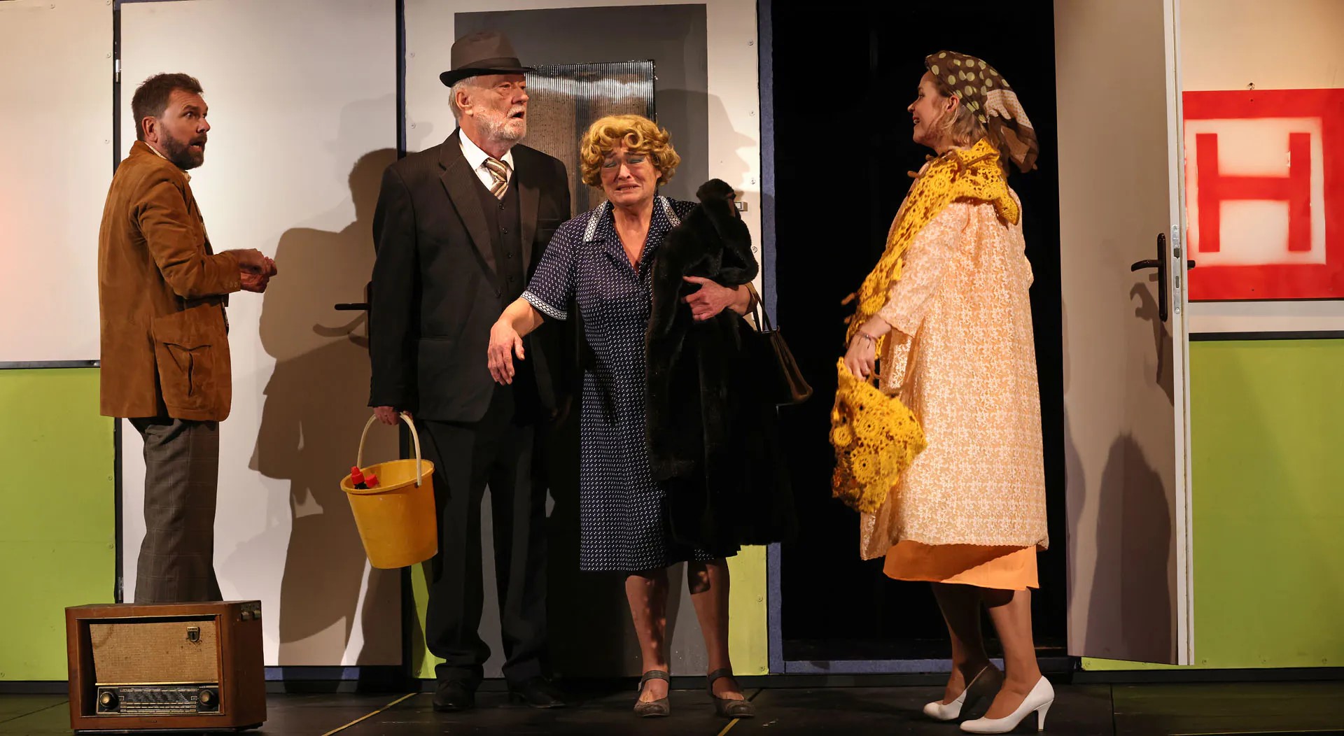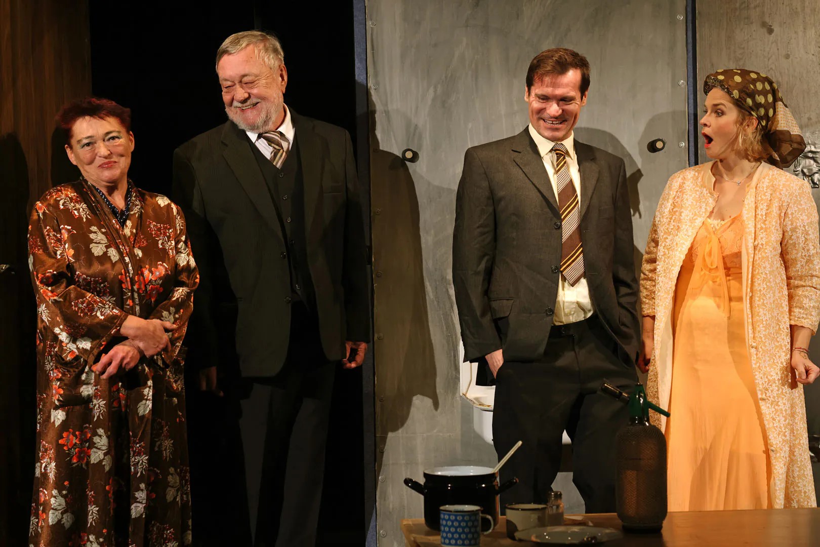 Jaroslav Slánský v této inscenaci znovu oživuje příběh dvou manželských párů, které se rozhodnou
