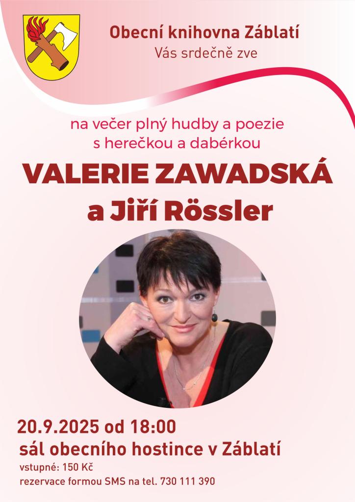 Večer poezie a hudby ve kterém vystoupí Valérie s Jiřím Rösslerem. Pořádá